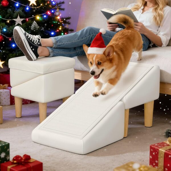 Dog Ramps for Small Dogs and Cat, Removable Non-Slip Mat & Seat Cushion, 23 Incline Foldable Dog Ramp Ottoman, Solid Wood Anti-Slip Pet Ramp, for Small Senior & Injured Dogs & Cats